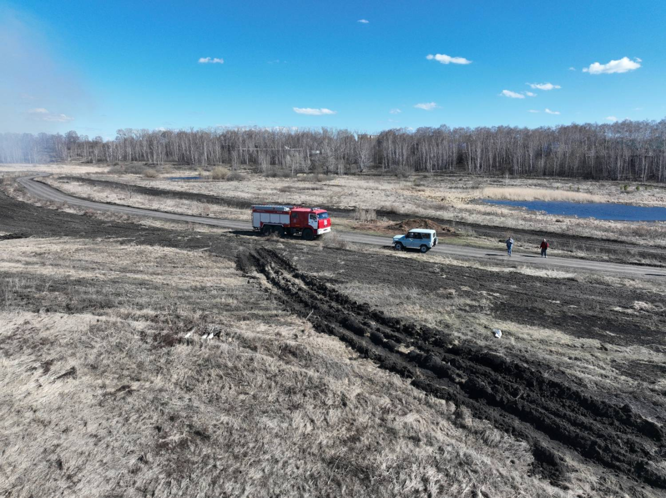 В работе используют трактор с плугом для прокладки минерализованных полос и малый лесопатрульный комплекс, который сдерживает огонь и предотвращает переход пламени на неконтролируемую территорию.