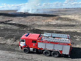 Специалисты городского аварийно-спасательного отряда занимаются огневыми работами и следят за возгоранием. У них есть необходимое оборудование: ранцевые огнетушители, лопаты и специальные хлопушки для борьбы с кромкой огня.