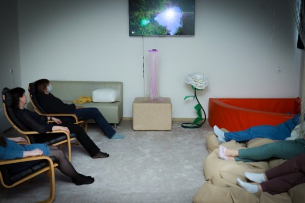 В Центре им. Г.А. Илизарова комната психологической разгрузки - специально оборудованное пространство, организованное таким образом, что находящийся там, вне зависимости от возраста и состояния здоровья, ощущает полный покой, комфорт и безопасность. Даже за короткий промежуток времени пребывания в такой комнате снимается стресс, наступает полное расслабление, значительно улучшается эмоциональное и физическое самочувствие. Такая форма релаксации благотворно влияет на психофизическое состояние и работоспособность, снимает мышечное и психоэмоциональное напряжение без применения медикаментозных препаратов.
