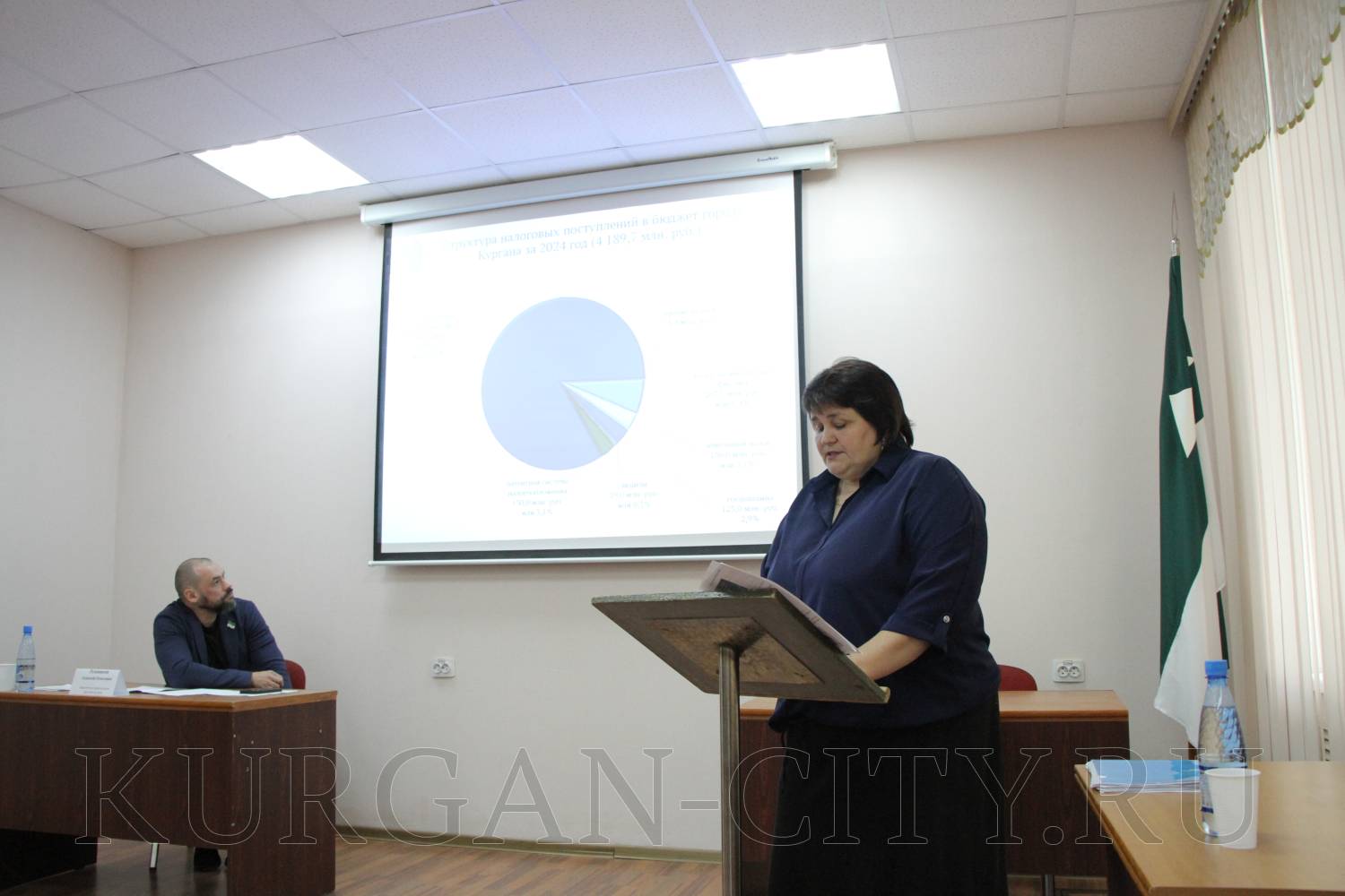 Затем с докладом об исполнении бюджета города за 2024 год выступила заместитель директора департамента финансов и имущества администрации города Кургана Ирина Шевелева.