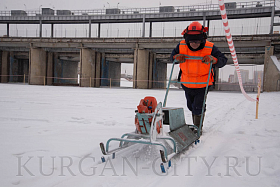 Владимир Овсянников подчеркнул, что в этом году толщина льда значительно меньше прошлогодних показателей. На сегодня она составляет 37 см, к примеру, в 2024 году была более 50 сантиметров. Также в этом году отмечается плотный снежный покров, который возник из-за чередующихся периодов оттепелей и усложнил подготовку к ледорезным работам. Поэтому в текущем разметка на ледовые поля году сотрудниками «Водного союза» была нанесена с помощью снегоходов.