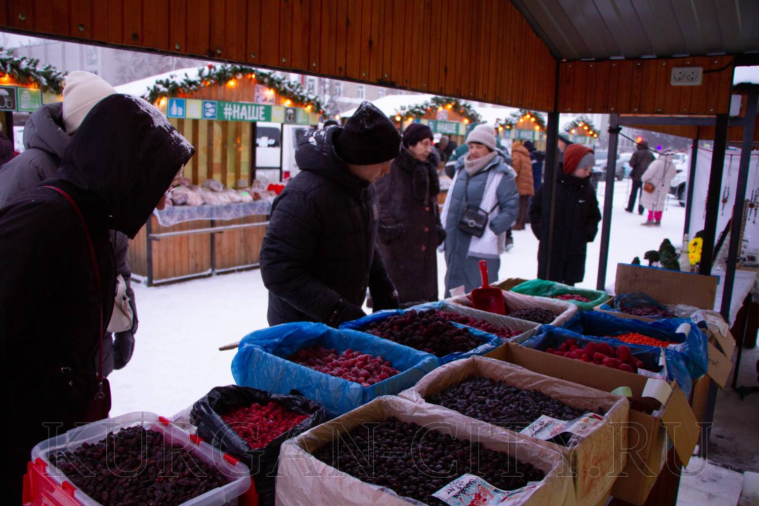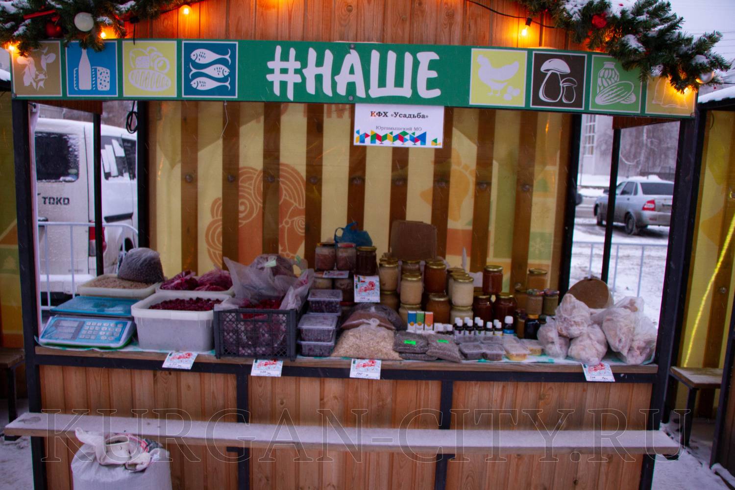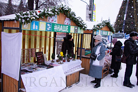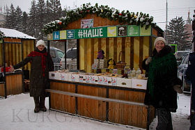 КФХ «Усадьба» Юргамышского муниципального округа представляет Леонид Пысин, который предлагает большой ассортимент продукции - замороженную местную ягоду – малину, крыжовник, разные виды смородины, рябину черноплодную, тушенку, варенье из тыквы и разные виды меда, курицу. Даже овес и лен заготовил фермер для желающих поправить свое здоровье. «Участвуем в различных ярмарках, на Рожественской работаем каждый год. Горожане покупают, уступаем, конечно, и продаем дешевле. Рождественская ярмарка для души. Нам нравится накануне Нового года радовать горожан экологически чистой продукцией», - улыбается Леонид Пысин.