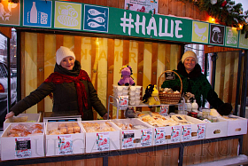 Рядом с торговыми прилавками в ярмарочных домиках ежедневно с 12.00 до 22.00 часов можно будет купить продукцию общественного питания и товары новогоднего ассортимента.