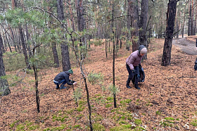 Не остались в стороне от общего дела и сотрудники администрации Кургана и муниципальных учреждений. Сегодня они наводили порядок в лесных массивах микрорайонов Утяк, Тополя и в районе Голубых озёр.