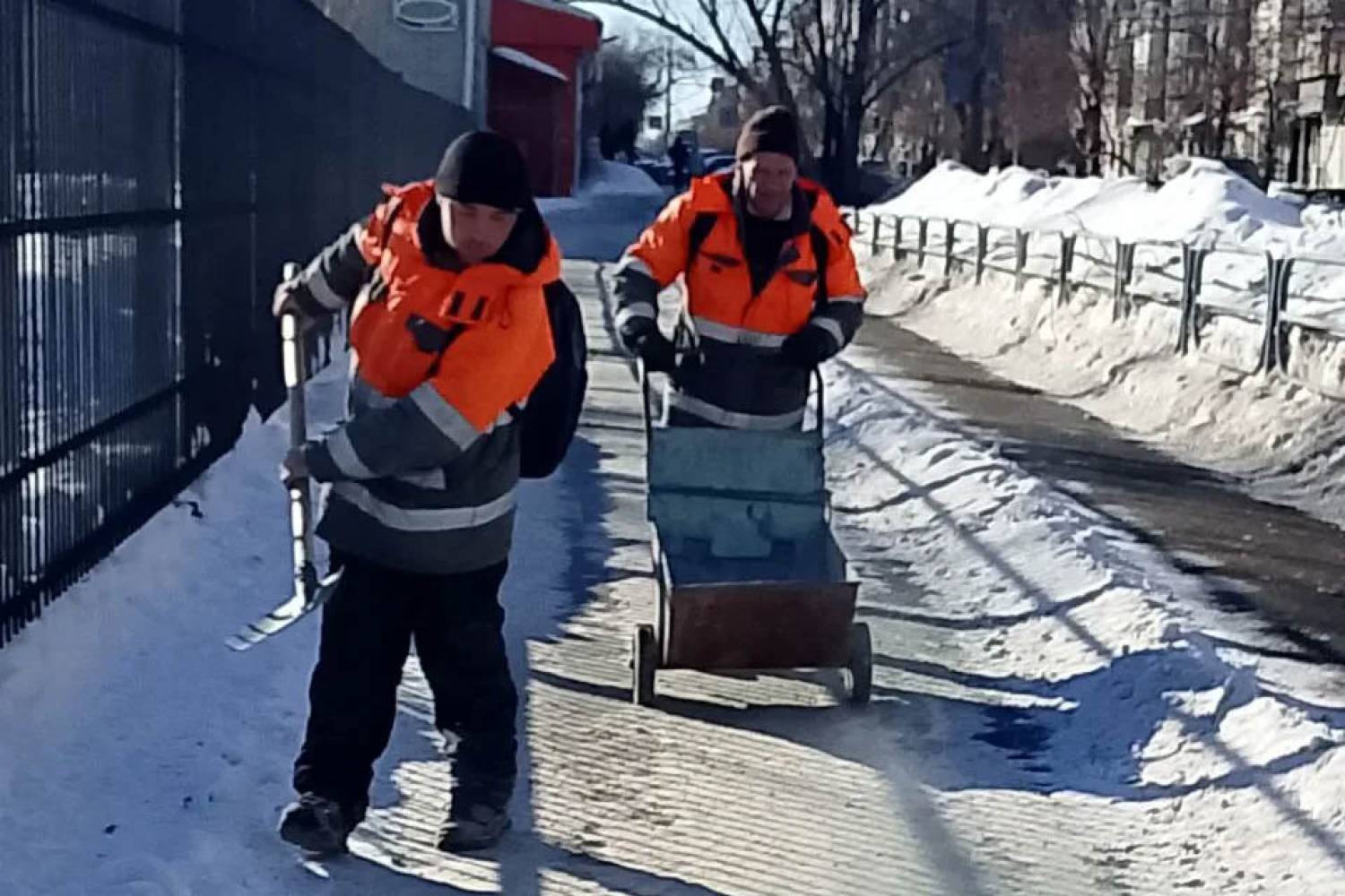 Каждый день на улицы города выезжает техника и выходят бригады рабочих, чтобы расчистить проезжую часть, убрать снег с тротуаров, привести в порядок территории скверов и парков, провести противогололедную обработку. Объемы работ большие, поэтому службы трудятся днем и ночью.
