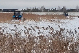 Камыш скашивают на территориях вблизи водоемов. Летом это выполнить невозможно, потому что техника не может проехать по болотистой местности. В зимний период почва достаточно промерзает, что и позволят скосить камыш. В труднодоступных местах, куда техника не может проехать, трудятся рабочие с триммерами.