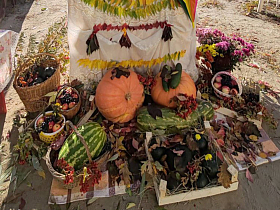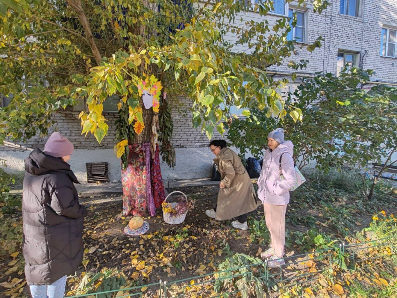 С выдумкой и фантазией участники конкурса подошли к изготовлению чучела куклы-осени. К примеру, в ТОС «Тихоновка» кукла-осень символизируется с дарами осени. Кукла изготовлена из каркаса высотой 2,5 метра и украшена листьями и другим природным материалом. Ростовую куклу в ТОС «Благодатный» изготовили жители дома № 44 по ул. Аргентовского. В ТОС «Орбита» ростовая кукла имела интересную деталь в своем образе – букет роз, изготовленный из алых атласных лент.
