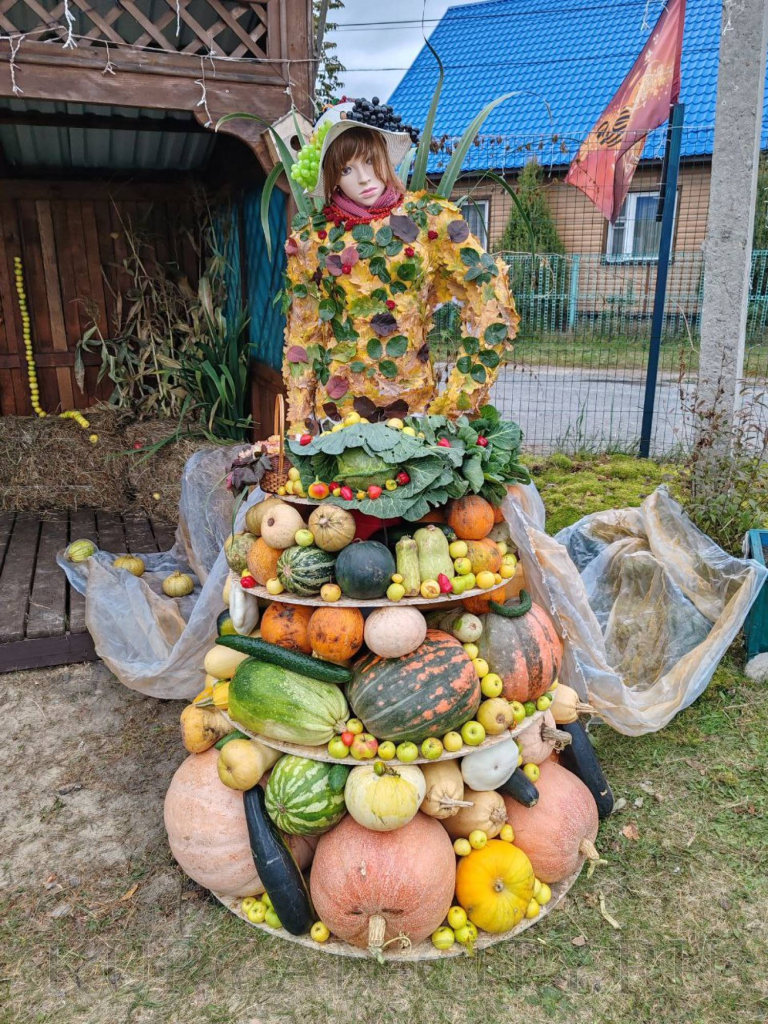 В ТОС «Рябково» жители установили ростовую куклу «Марфуша» с её урожаем.