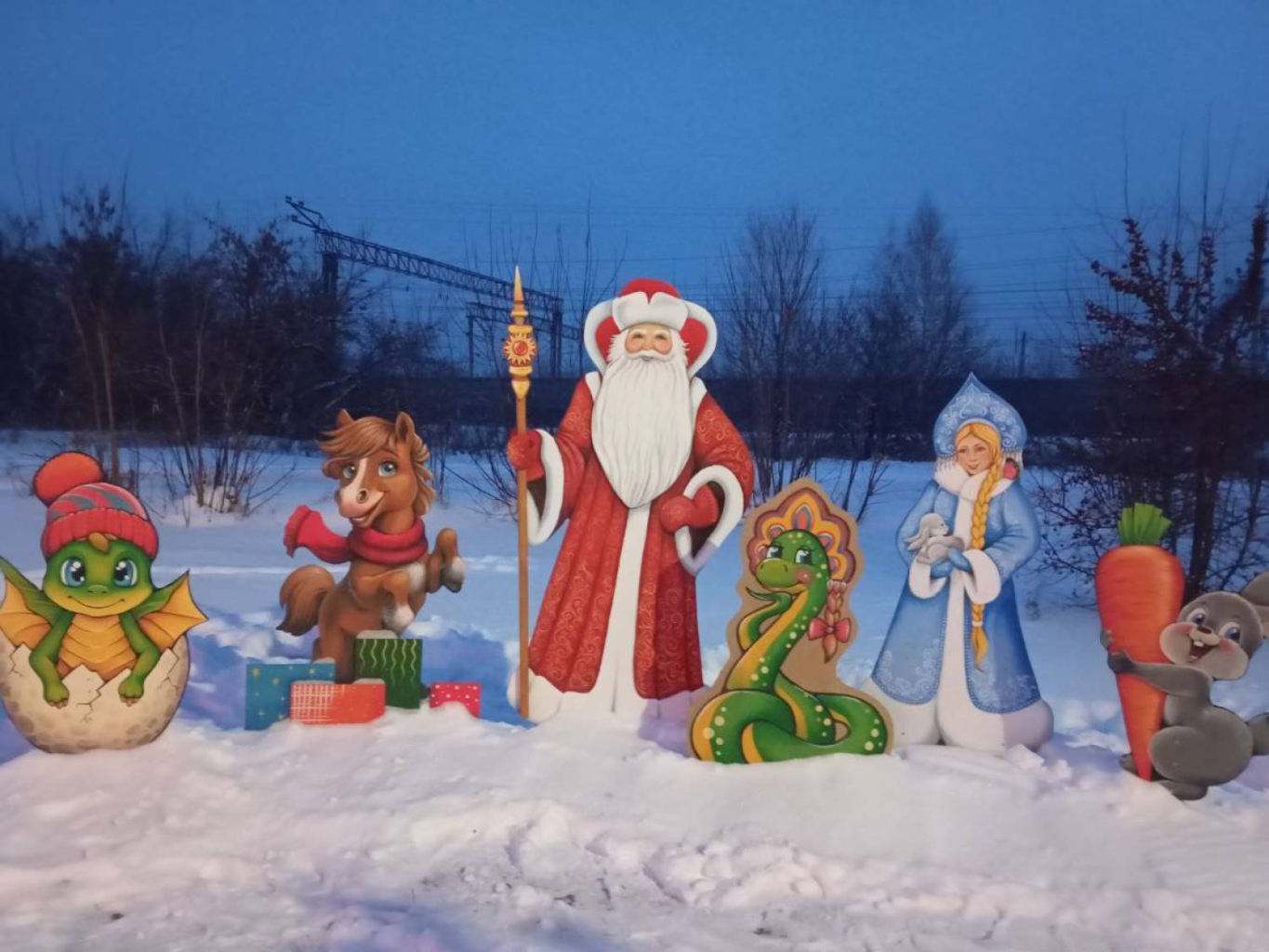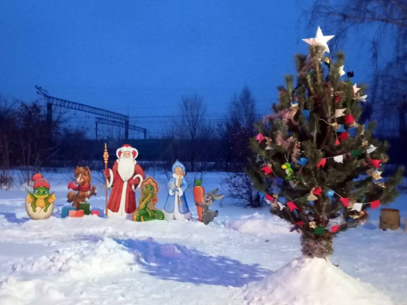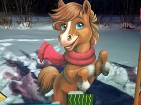 Установили елку и в ТОС «Утяк». Здесь традиционно местная умелица вырезает деревянные фигуры – символы года. Так, к уже имеющимся дракону, змее и кролику присоединилась лошадка.