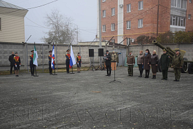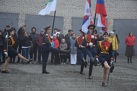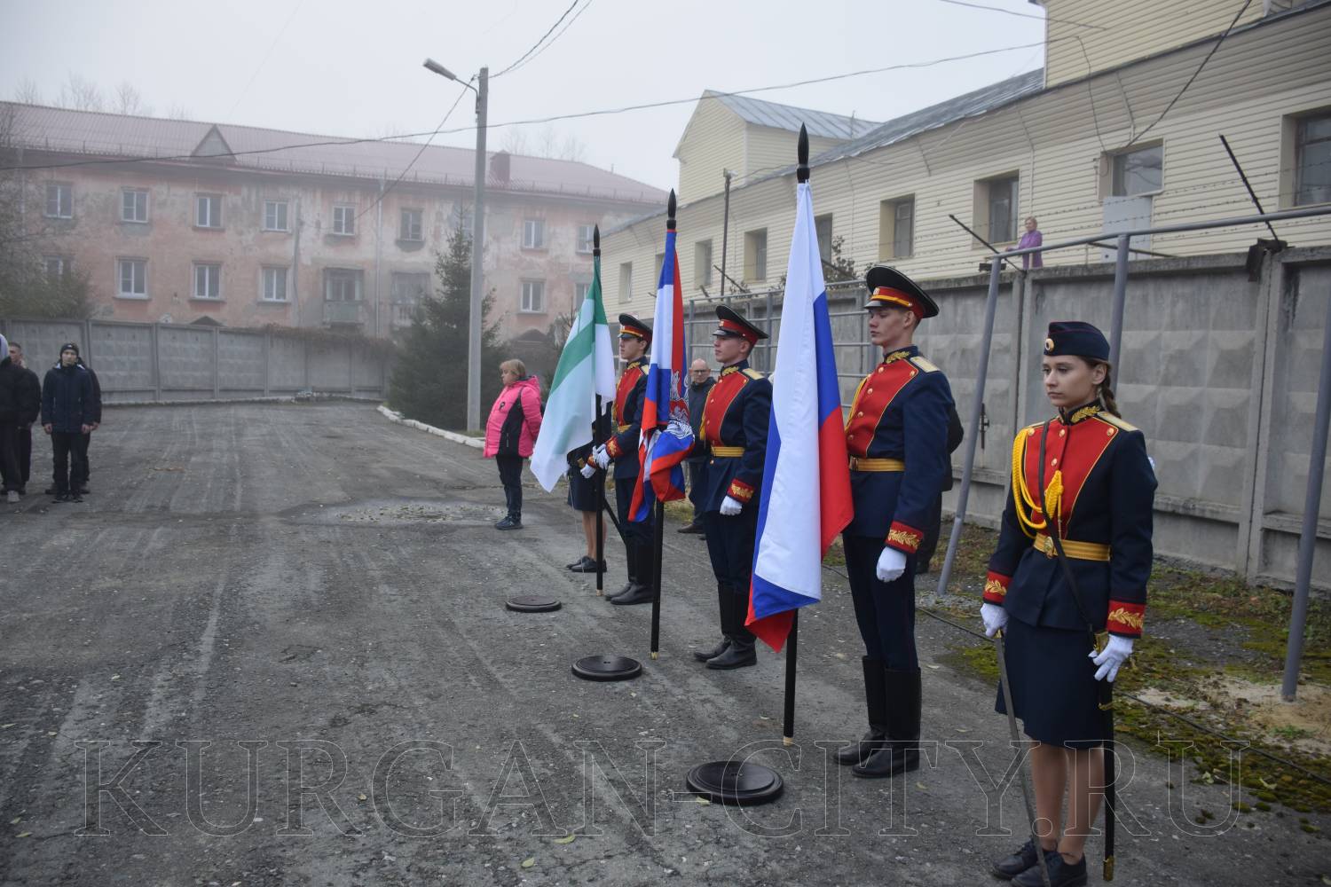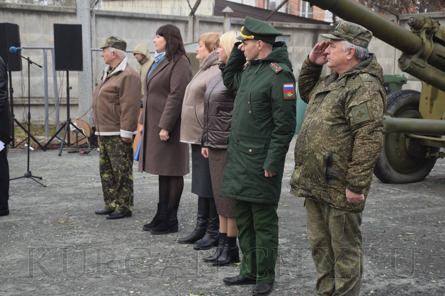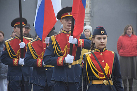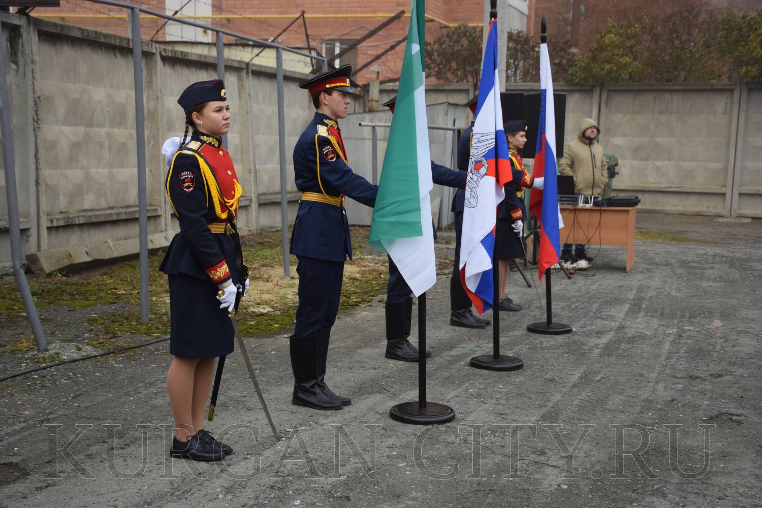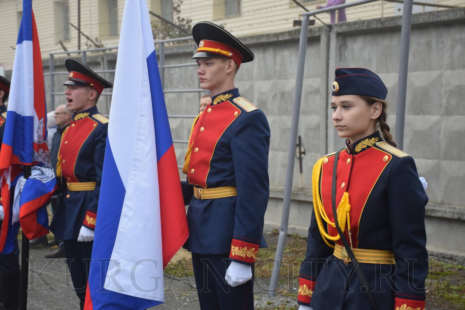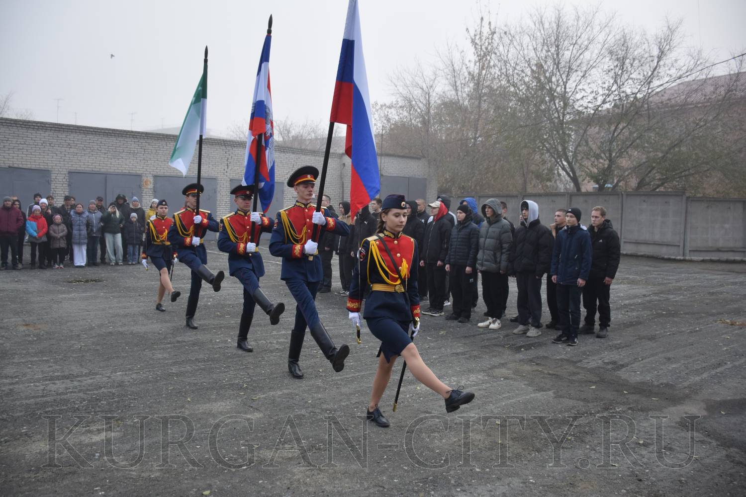 Традиционно перед началом мероприятия для призывников прозвучала команда «Равняйсь! Смирно!». Кадеты школы №75 внесли флаги РФ, Вооруженных Сил и города Кургана.