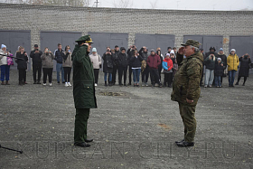 Со словами напутствия к будущим новобранцам обратилась депутат Курганской городской Думы Татьяна Фёдорова. Она отметила, что в строю новобранцев стоят те, кто окончил школу, кто-то из ребят получил среднее или высшее образование, кто-то работал. «Всем молодым людям, которые сегодня отправляются служить Родине, желаю достойно выполнить свой долг, оправдать доверие, с достоинством пронести все тяготы армейской жизни, набраться опыта, смелости, стать более дисциплинированным, чтобы каждый принёс пользу на мирных просторах страны. А мы всегда ждём вас на родной курганской земле!», - обратилась к ребятам Татьяна Петровна. Она пожелала родителям, близким и родственникам писать письма солдатам.