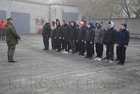 В Кургане на базе городского военного комиссариата сегодня состоялась очередная торжественная отправка призывников в рамках осеннего призыва в ряды Вооружённых сил Российской Федерации. В мероприятии приняли участие представители военного комиссариата по городу Кургану, ветераны, родные и близкие призывников. Приветствовала новобранцев заместитель главы города, директор департамента социальной политики администрации города Кургана Юлия Гурьянова.