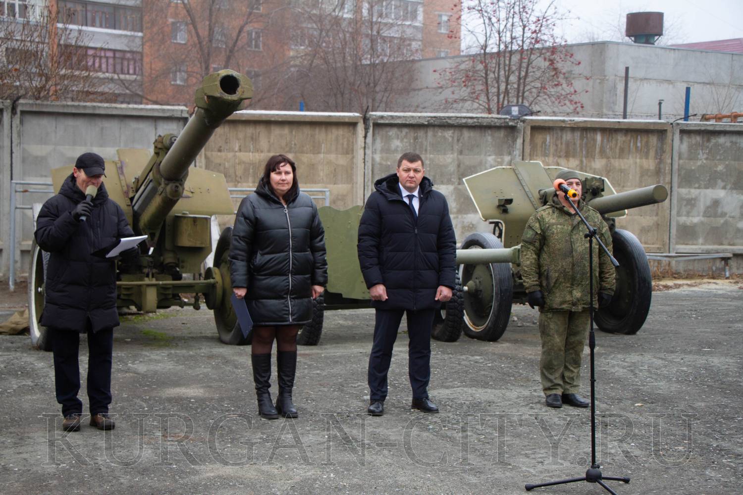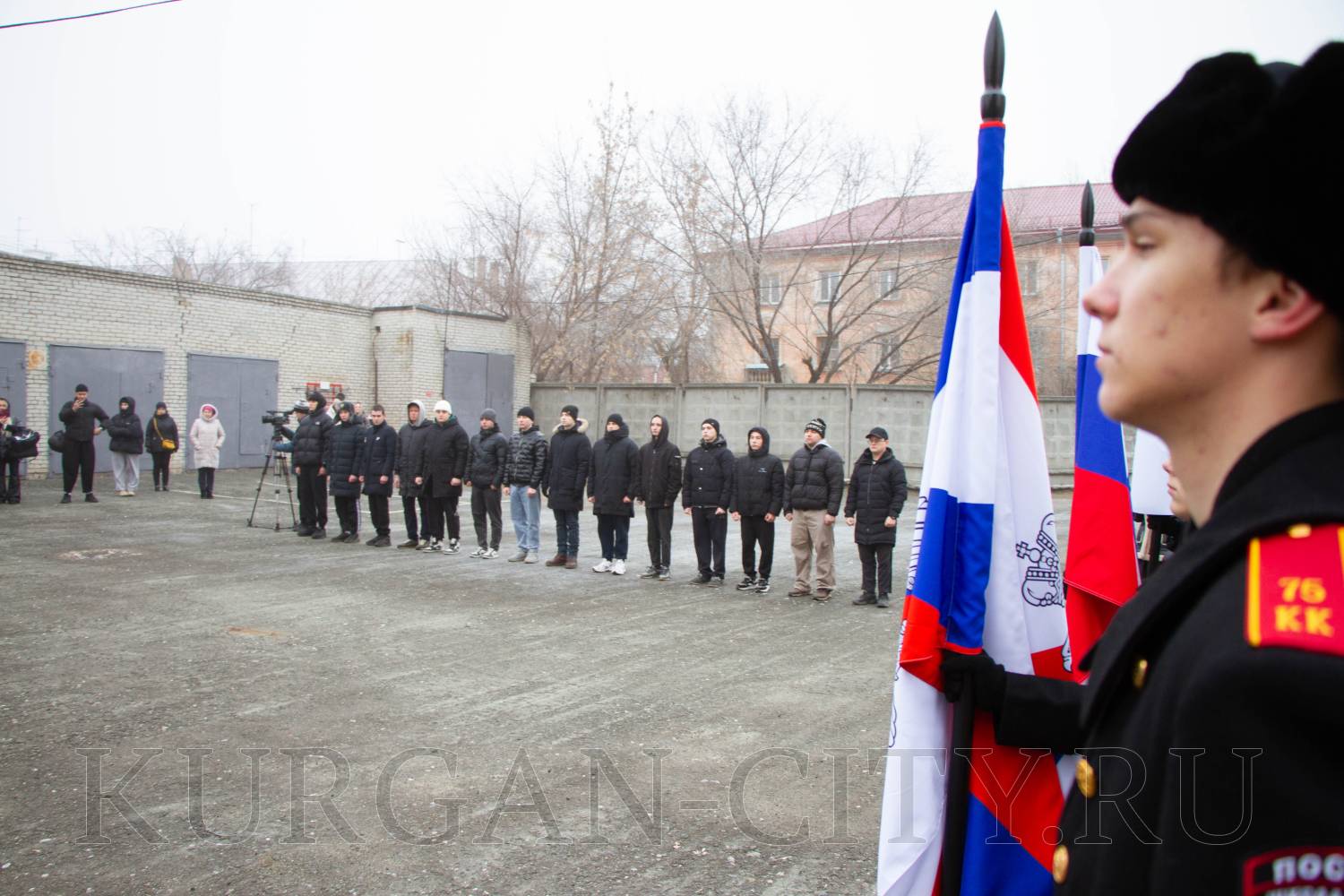 Традиционно перед началом торжественного мероприятия для призывников прозвучала команда «Равняйсь! Смирно!». Знаменная группа школы № 75 имени Героя России Евгения Викторовича Родькина внесла флаги РФ, Вооруженных Сил и города Кургана. Во время церемонии отмечалось, что призывники вступают в ряды Вооруженных Сил РФ в знаменательный Год защитника Отечества, что имеет особую значимость в год празднования 80-летия Победы в Великой Отечественной войне.