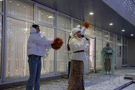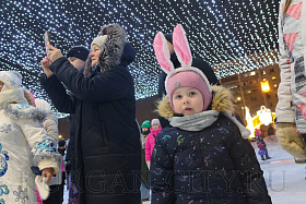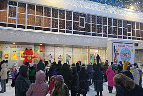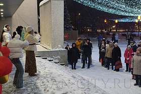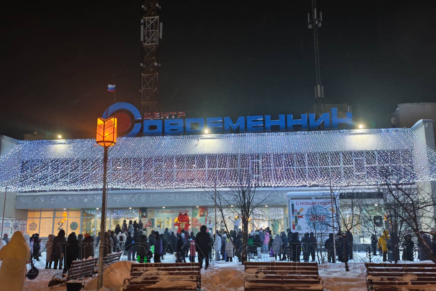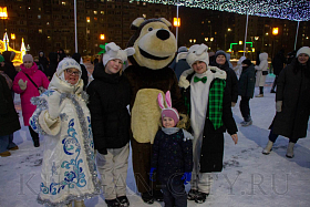 Весь вечер у «Современника» звучали новогодние песни, а ростовые куклы и артисты в карнавальных костюмах создавали праздничную атмосферу и приглашали горожан принять участие в веселом представлении.