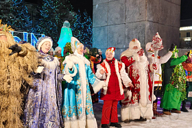 Всех, кто в эти минуты пришёл на площадь им. Ленина, ждало сказочное представление. Вместе со сказочными персонажами горожане помогли Деду Морозу и Снегурочке найти волшебный мешок, вернуть праздник и зажечь огни на новогодней ёлке.