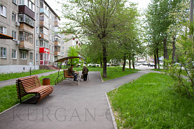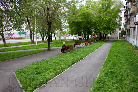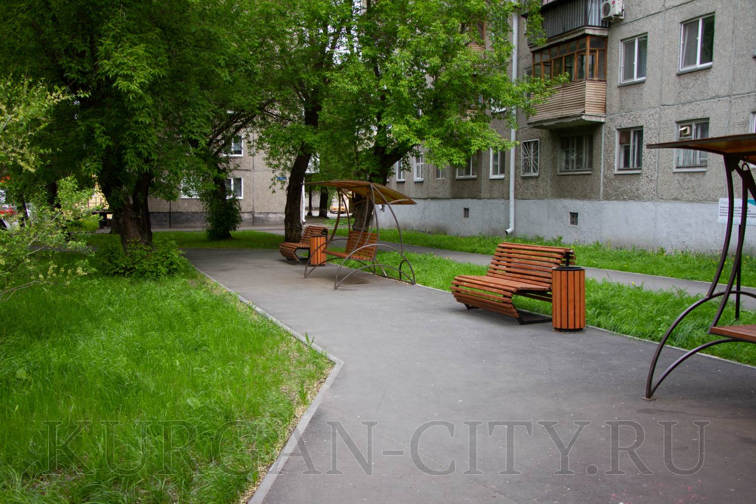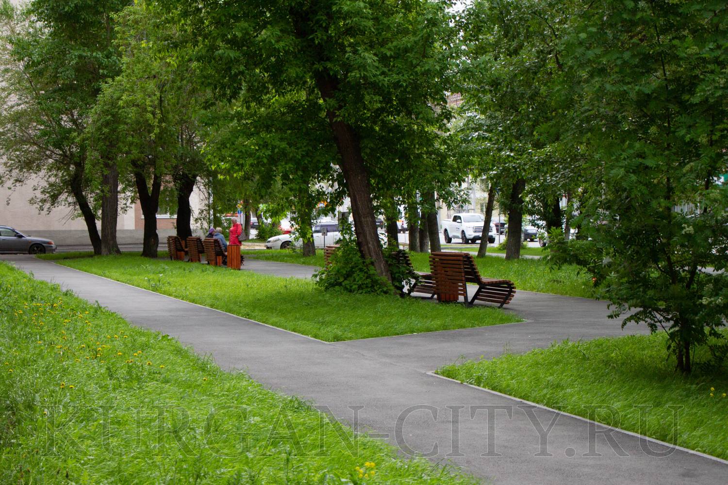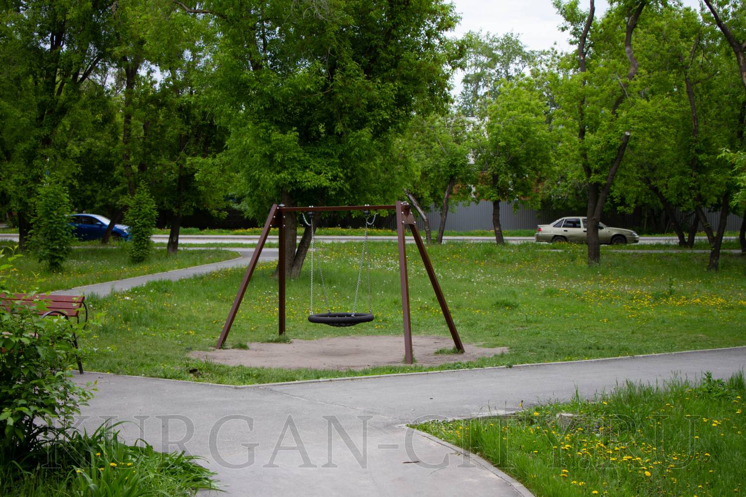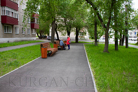 Еще одной точкой посещения стали два мини-сквера вблизи многоквартирных домов №46 и №48 по улице К.Мяготина. Там сделана тропиночная сеть, обустроены газоны, установлены скамейки для отдыха и урны, появились качели и перголы.