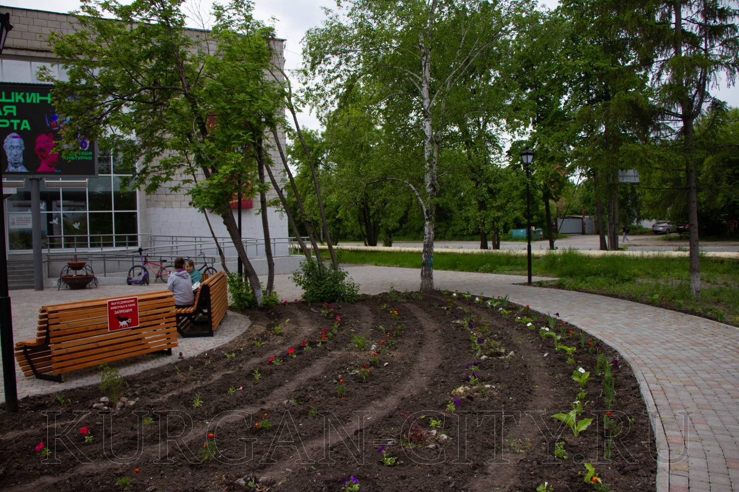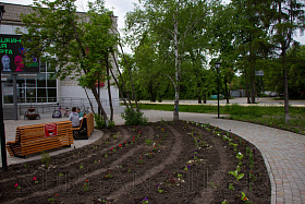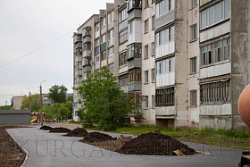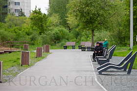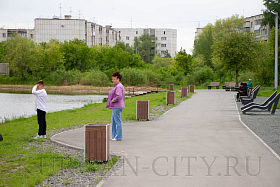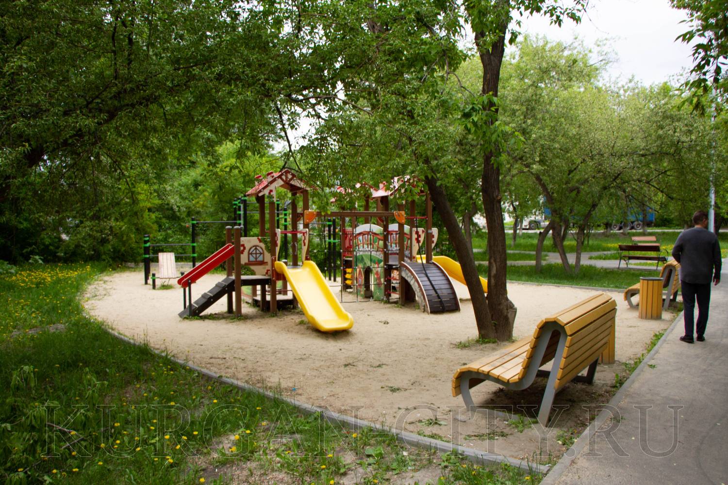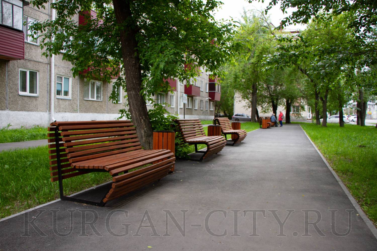 Еще одной точкой посещения стали два мини-сквера вблизи многоквартирных домов №46 и №48 по улице К.Мяготина. Там сделана тропиночная сеть, обустроены газоны, установлены скамейки для отдыха и урны, появились качели и перголы.