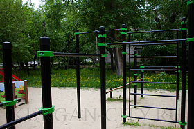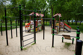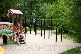 Поблизости от ДК им. М. Горького благоустроена еще одна общественная территория, расположенная на пересечении улиц Дзержинского и Ястржембского. Долгое время пустовавший сквер обрел новую жизнь, и теперь эта территория стала очень популярной у горожан всех возрастов. Чтобы привлечь жителей микрорайона, в сквере созданы точки притяжения для любителей физкультуры и спорта, а также для семей с детьми: есть воркауты, детский игровой комплекс и качели «Гнездо». На детской площадке дополнительно установлены скамейки и урны.