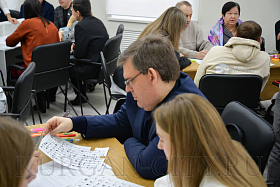 Всем присутствующим было предложено поучаствовать в интерактивной дизайн-игре. Разделившись на группы, участники проектной сессии обсудили, как можно использовать пространство площади и прилегающих территорий, что необходимо добавить, над чем поработать. Свои идеи команды визуализировали на карте с изображением центральной площади. Горожане приклеивали стикеры с предложениями и отмечали проблемные, по их мнению, места.