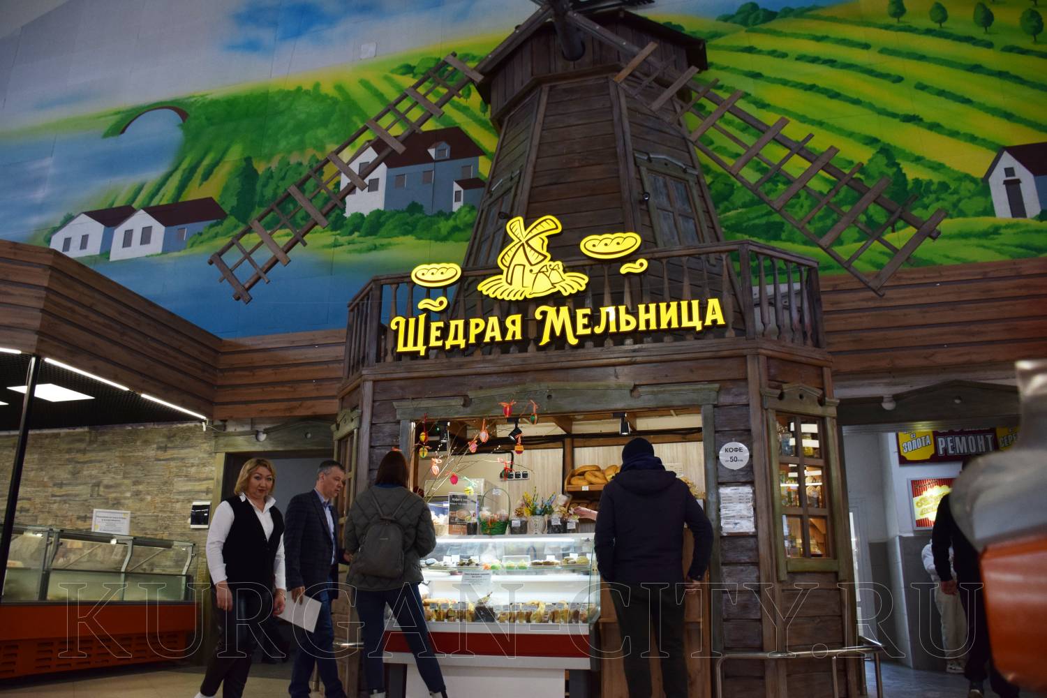 На территории Курганского центрального рынка начала действовать необычная торговая точка, оформленная в виде старинной мельницы, где продается продукция МУП «Комбинат питания». «Это реальная историческая реконструкция, созданная нами по фотографиям XIX века», - рассказал директор муниципального унитарного предприятия Александр Мишкарев.