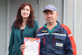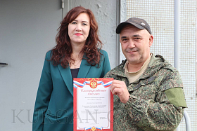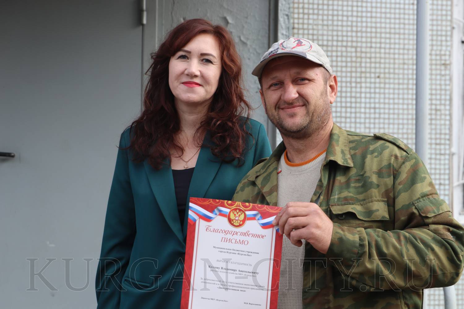 Директор учреждения Мария Верходанова вручила благодарственные письма МБУ «КурганЛес» трактористу Андрею Томилову и рабочим зеленого хозяйства Александру Саломатову, Сергею Бобровскому и Владимиру Козлову. Она также пожелала работникам своего учреждения хорошего настроения и благополучия, поблагодарила их за труд и то, что они всегда с пониманием относятся к исполнению задач, которые стоят перед учреждением.