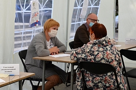В Кургане ежедневно продолжают работать выездные открытые уличные общественные приёмные. Они организованы в разных микрорайонах города в специальных шатрах на открытом воздухе с соблюдением рекомендаций Роспотребнадзора.