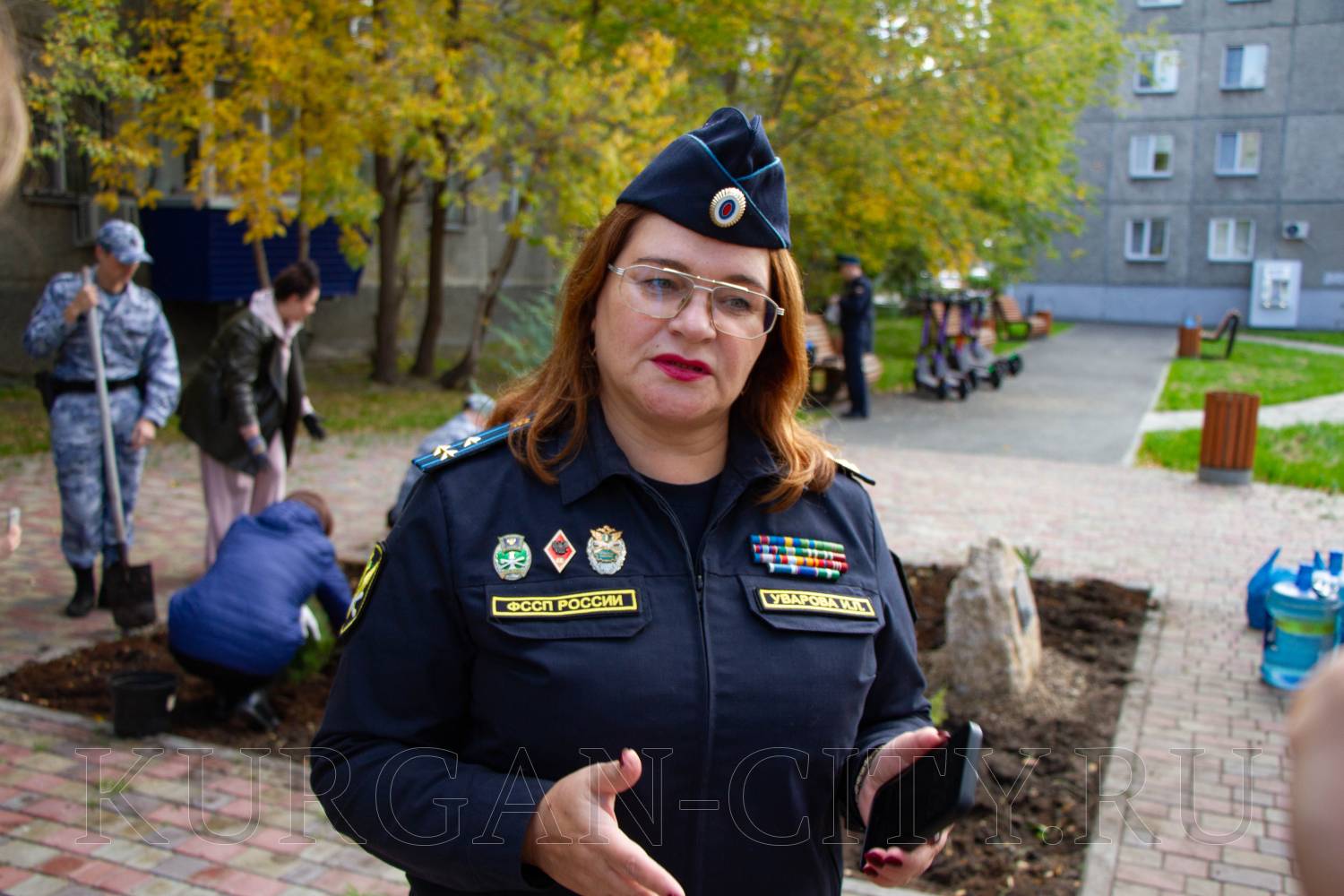 «Во взаимодействии с администрацией города Кургана мы выбрали территорию, подобрали дизайн, проект составили, подобрали соответствующие кустарники для того, чтобы здесь всё получилось гармонично, чтобы нашим жителям интересно было прогуливаться. Эта территория находится в непосредственной близости от нашего управления, за что мы очень признательны администрации города. Это позволит нам обеспечивать уход за этим сквером в любое время года. Зимой, осенью, летом мы будем ухаживать за данной территорией, показывать нашим гостям, нашим новым сотрудникам, кто к нам приходит на службу, что это частичка нашего города, в благоустройство которой мы внесли свой вклад», - пояснила Ирина Уварова.
