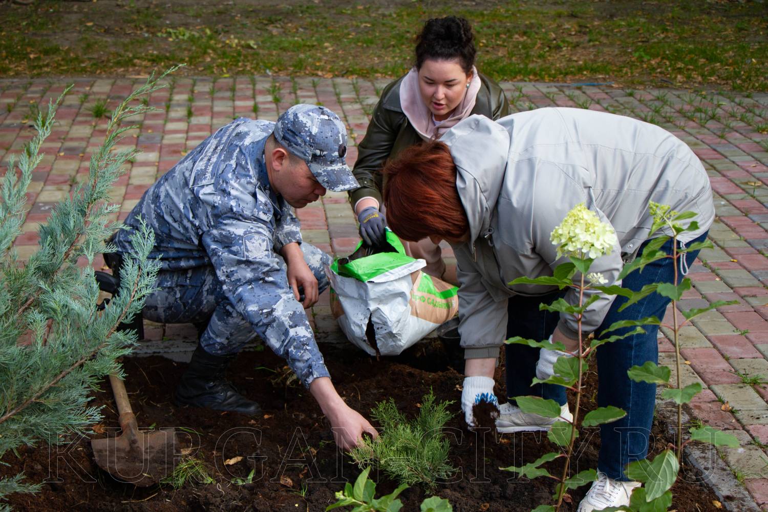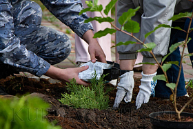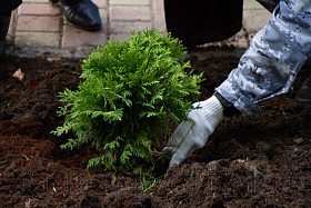 Судебные приставы решили подойти к украшению сквера комплексно. Вместе со специалистами разработали ландшафтный проект, подобрали подходящие по высоте деревья, кустарники и цветы, закупили саженцы, подготовили почву к посадке. И сегодня высадили 6 кустов можжевельника, горную сосну, гортензии.