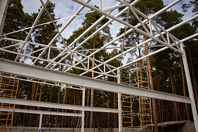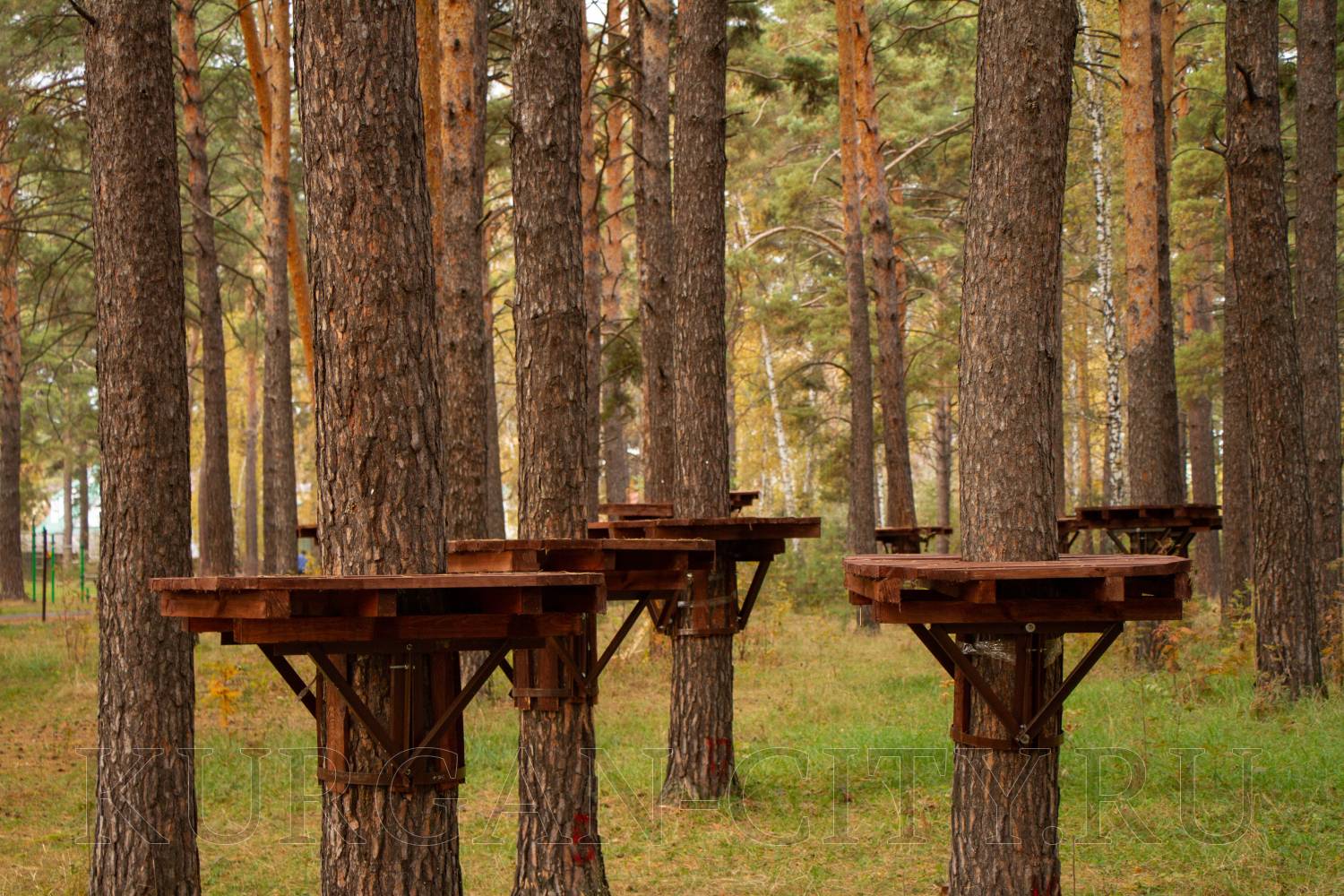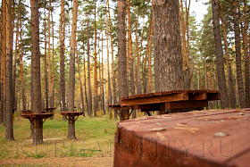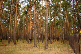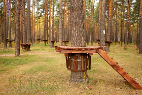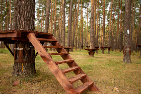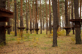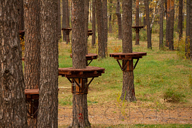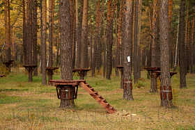 На текущий период инвестором на территории экопарка уже установлен пункт проката инвентаря. Начат монтаж веревочного городка, на деревьях смонтированы деревянные площадки. Отметим, что веревочный городок предполагает два кольцевых маршрута в каждом по 14 этапов и 17 этапов для семей с детьми в возрасте от 4-14 лет. Также здесь разместится пейнтбольная площадка и спортивный батут. Сейчас инвестором проведены работы по установке ограждения территории веревочного городка. Также начался монтаж модульного административного строения площадью 180 кв. м с навесом, залом для проведения детских праздников и VR-ареной (одновременно сможет обслуживать до 90 человек).