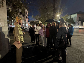 25 сентября состоялась новая интерактивная экскурсия «Тайны вечернего Кургана». Экскурсовод Татьяна Васильева предложила всем желающим взглянуть на город с необычного ракурса. С наступлением сумерек центр Кургана превратился в декорации для рассказов о загадочных и таинственных происшествиях прошлых столетий. Участники экскурсии погрузились в интересную эпоху. Воссоздать атмосферу тех лет помогли актеры из проекта "Кажется, здесь жил фотограф". Их талантливые миниатюры буквально оживили страницы истории.