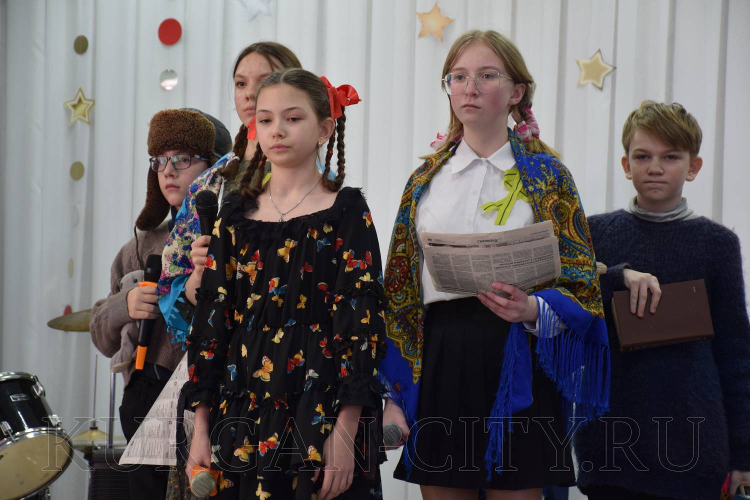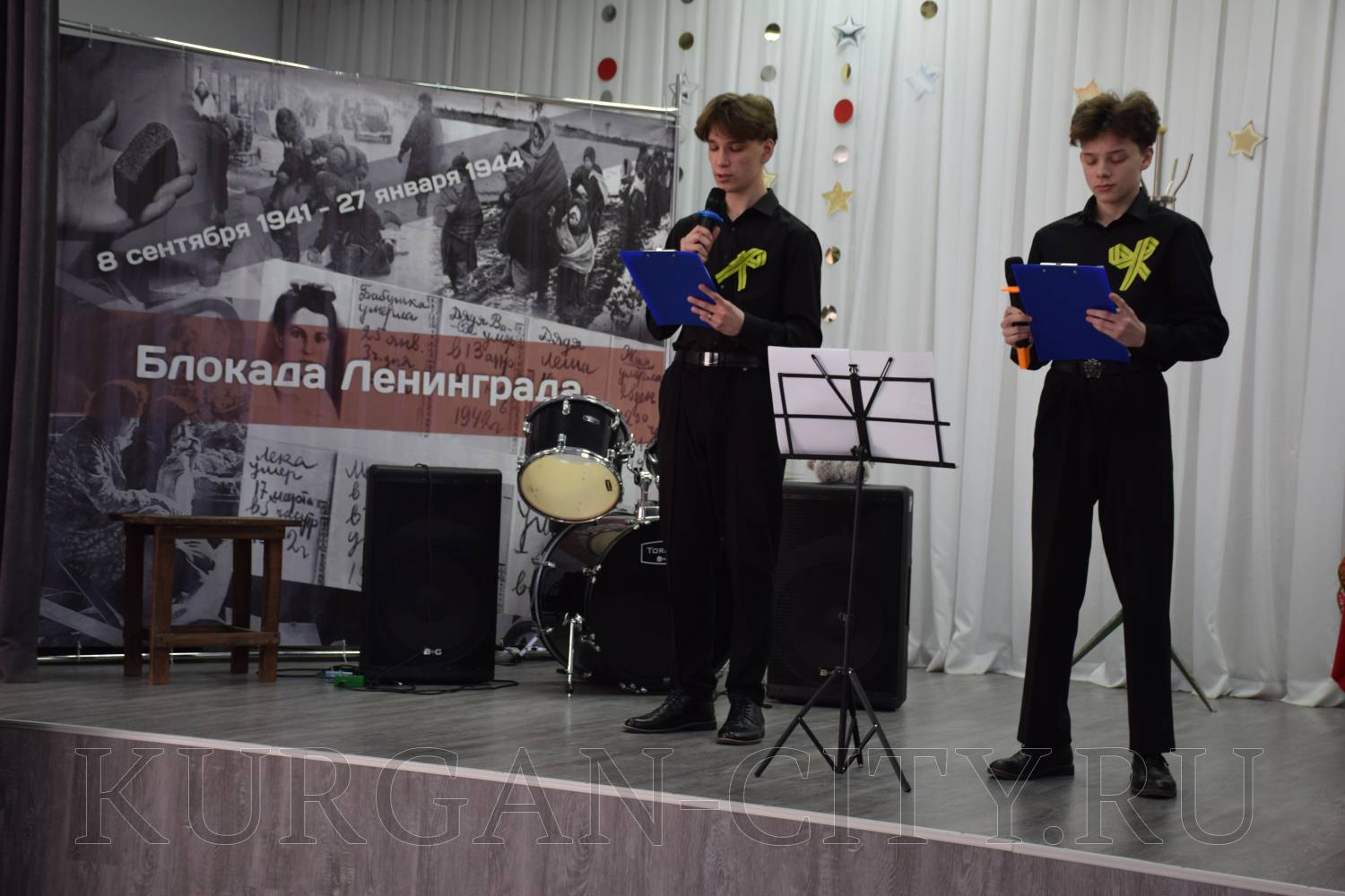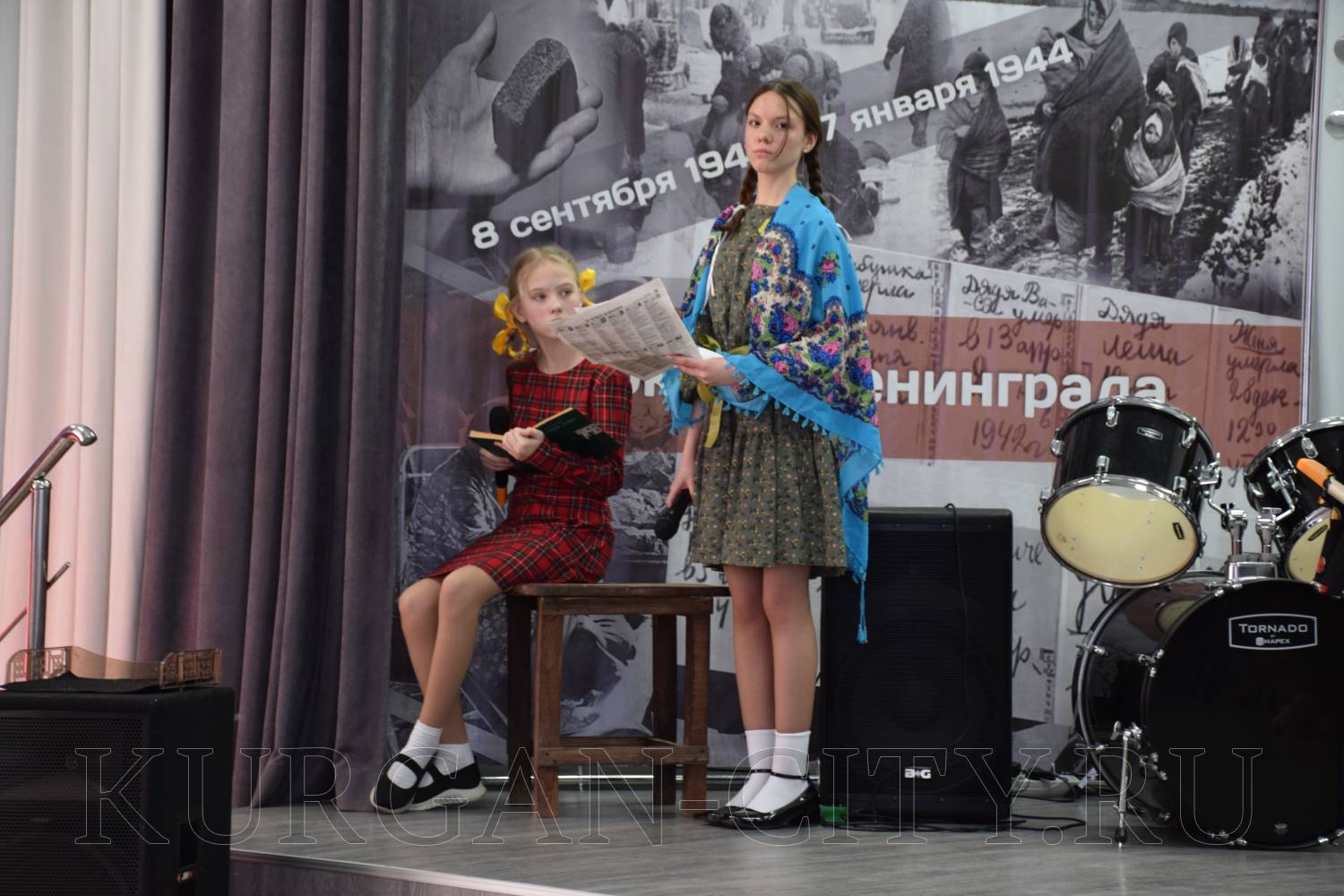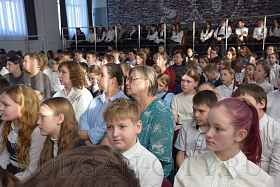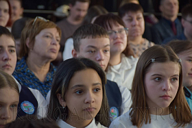 На сцене выступили школьники со стихами и театрализованными постановками. Сегодняшние школьники очень эмоционально и глубоко прочувствовали тему блокады, оттого в зале стояла тишина, и сидящие ученики с огромным интересом слушали своих одноклассников, рассказывающих о тяготах блокадного города.
