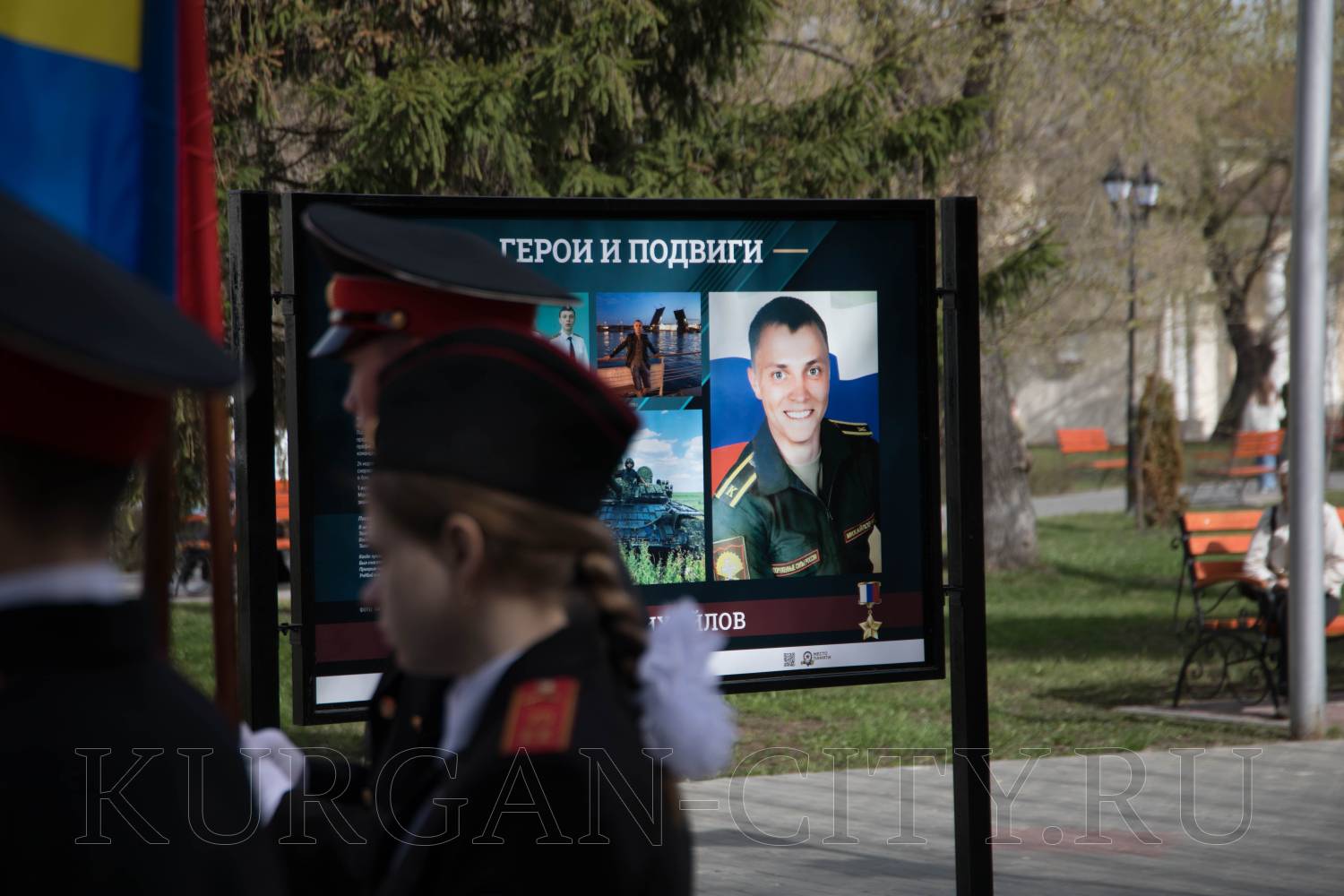 В Городском саду Кургана сегодня состоялось торжественное открытие выставки «Герои и подвиги» в рамках историко-просветительского проекта, который реализуется Российским военно-историческим обществом с 2022 года. Проект посвящен участникам специальной военной операции – современным защитникам Отечества, которые продолжают славные традиции героев Великой Отечественной войны. На мероприятие собрались ветераны специальной военной операции, родители и родные Героев СВО, кадеты и школьники, студенты, представители регионального общественного движения «Волонтеры Победы».