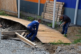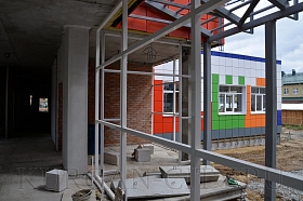 В настоящее время подрядчик приступил к благоустройству территории. Все подземные сети и внутренние коммуникации проложены. В здании выполнен каркас перегородок. На следующей неделе рабочие начнут их монтаж.