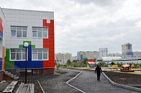 Территория строящегося детского сада в 7-ом микрорайоне заасфальтирована. Сейчас здесь устанавливают новые детские игровые комплексы и обустраивают площадки для игр малышей. Все внутренние сети проложены. Готовы и скрытые коммуникации в здании: электропроводка, вентиляция, сети водопровода, канализации и отопления. Фасад здания, рассчитанного на 150 мест, обшит металлокассетами. В нем ведутся отделочные работы. Частично бригады зашли на чистовую отделку.