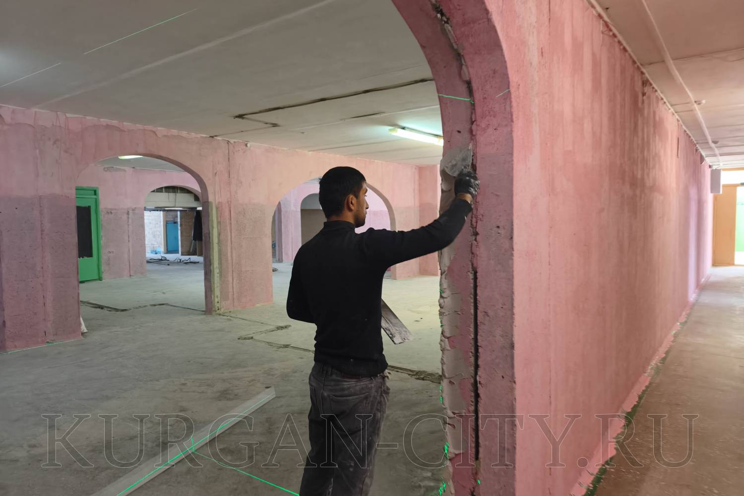 В 7-ой школе, которая тоже ремонтируется по национальному проекту «Молодёжь и дети», в данный момент проводятся демонтажные работы. Строительные бригады снимают старую краску со стен в пищеблоке, гардеробе, раздевалках, коридорах на 1-ом и 2-ом этажах.