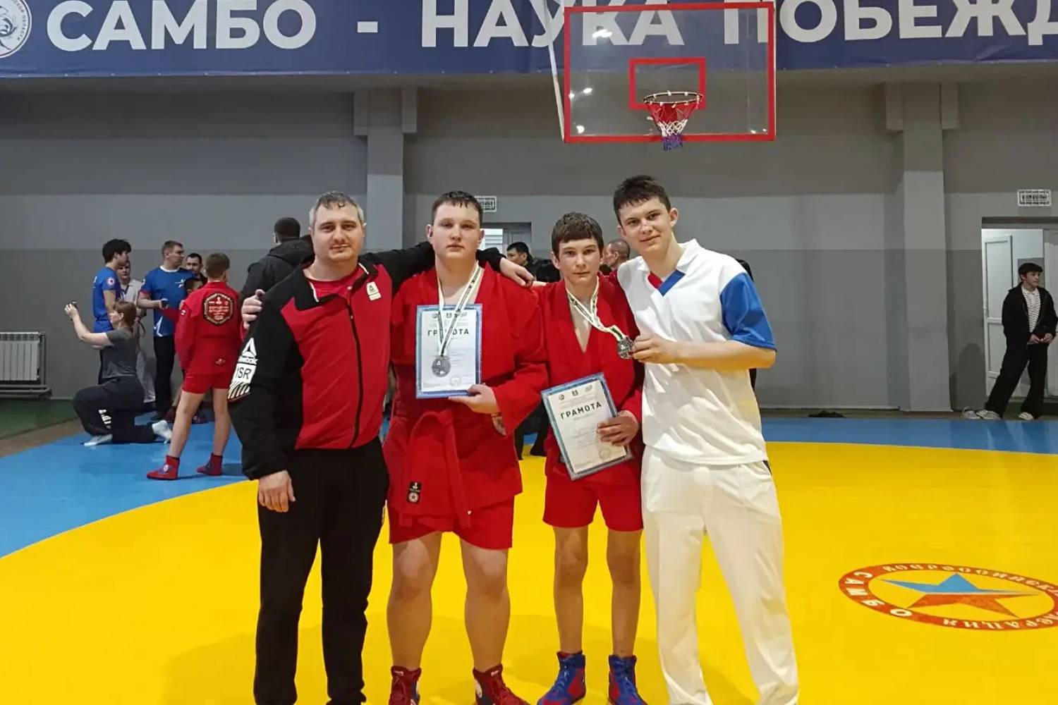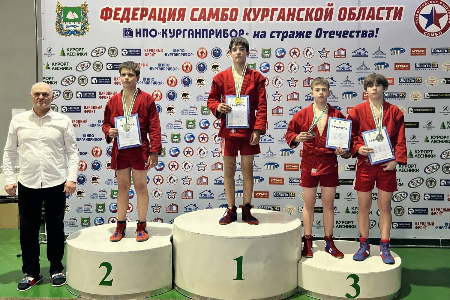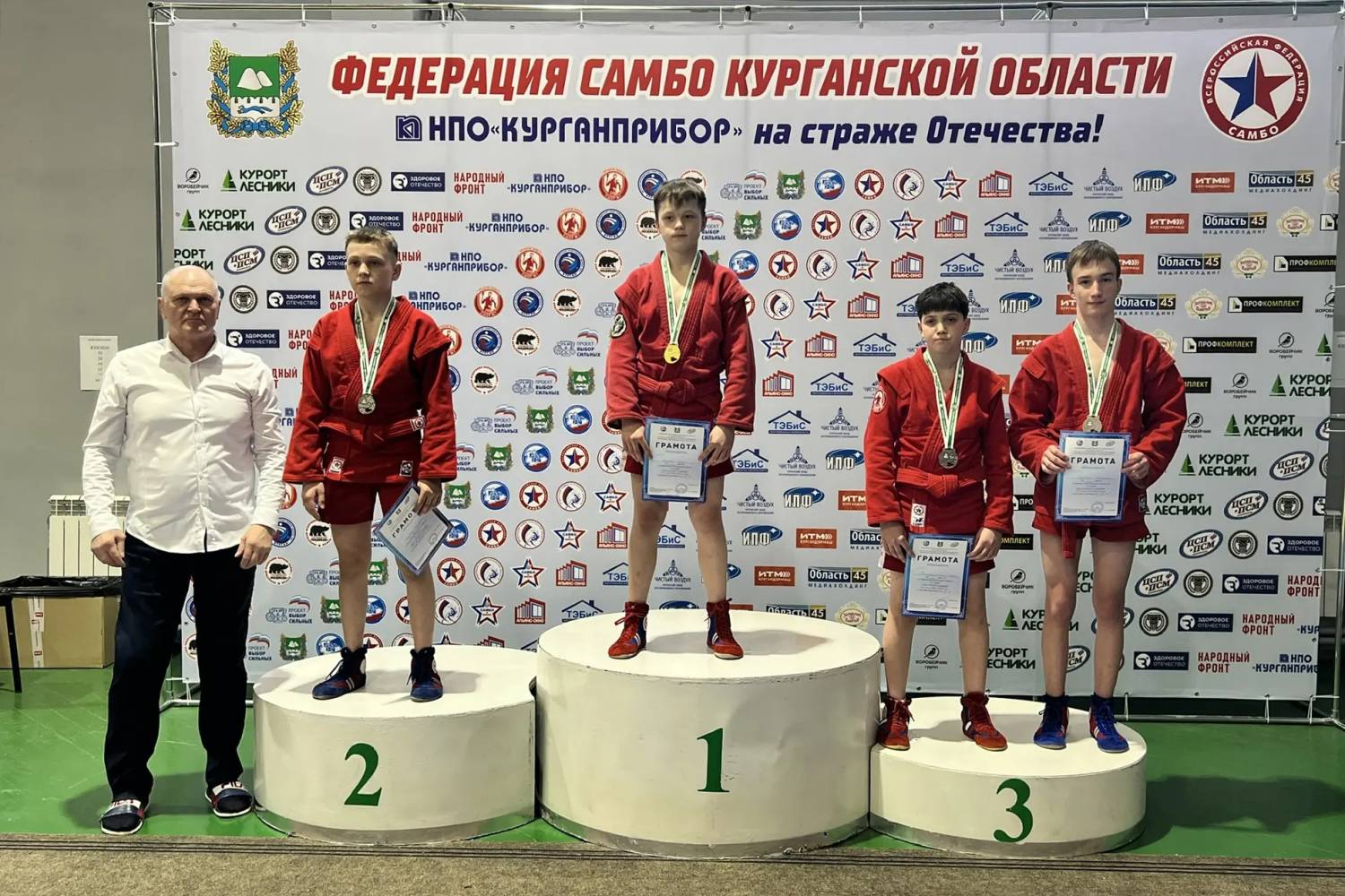 В Первенстве Курганской области по самбо среди юношей и девушек 12-14 лет участвовали спортсмены ДЮСШ № 4. На ковер вышли участники 15 команд из девяти округов области, всего порядка 200 юношей и девушек. 1-е место завоевали спортсмены Семен Маршинин (тренеры Дмитрий и Ольга Воронины), Евгений Гончаров (тренер Владимир Печерских), Вероника Шумайлова, тренирует которую Дмитрий и Ольга Воронины, и Кирилл Подкорытов (тренер Анатолий Петров).