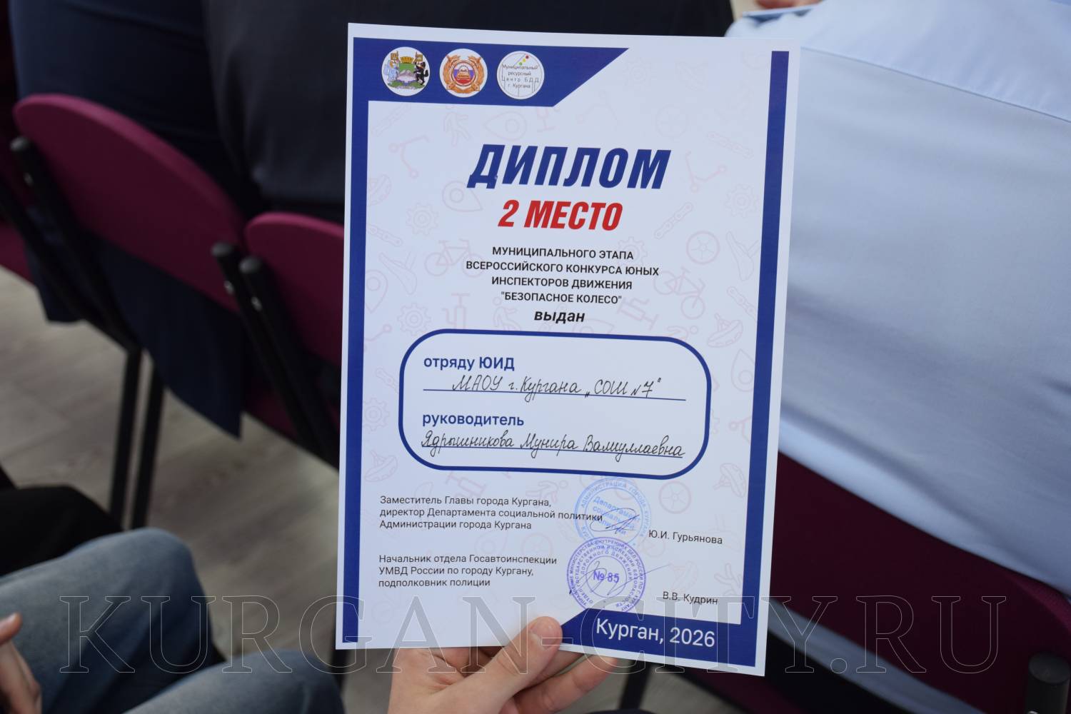 В Кургане на базе школы № 50 состоялась торжественная церемония награждения победителей городского конкурса юных инспекторов движения «Безопасное колесо - 2026». Это ежегодные соревнования, к которым в этом году было привлечено особое внимание, ведь они проходят в год 90-летия Госавтоинспекции.