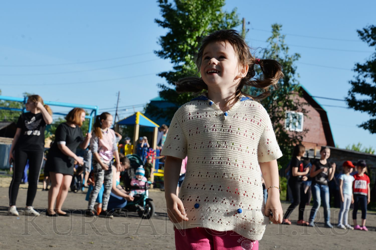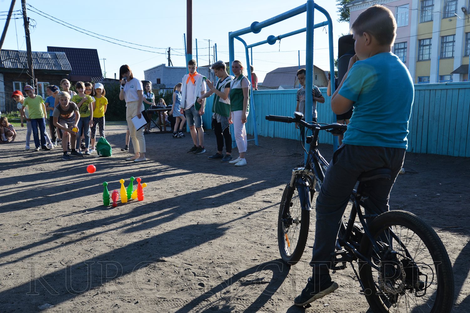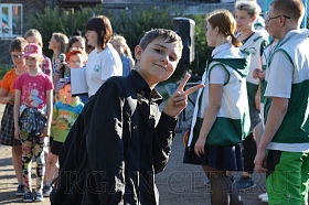 После приветственных речей пришла очередь конкурсов и весёлых развлечений, которые подготовили волонтёры Курганского Дома молодёжи. С большим азартом мальчишки и девчонки играли в мяч, импровизированный боулинг и зажигательно танцевали.