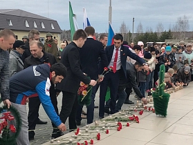 Накануне Дня Победы депутат Курганской городской Думы Артем Исламов принял участие в торжественной церемонии возложения гирлянд, венков и цветов к мемориальному ансамблю в честь воинов 32-го лыжного полка в поселке Увал.