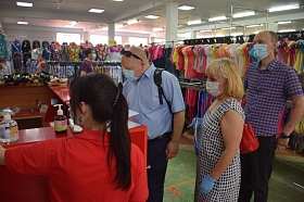Во 2-м микрорайоне Людмила Анатольевна вместе с уполномоченными сотрудниками органов исполнительной власти посетила продуктовые магазины, салоны красоты, магазины одежды, аптеки.