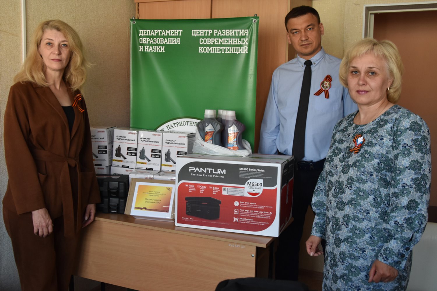 28 апреля Председатель Курганской городской Думы Игорь Прозоров и председатель постоянной депутатской комиссии по местному самоуправлению, Регламенту городской Думы и депутатской этике, директор средней общеобразовательной школы № 52 Людмила Алешкова передали в Центр развития современных компетенций приобретенные для участников СВО средства.