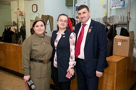 Депутат Курганской городской Думы Верходлиб Ю.В. и депутат Курганской областной Думы Ярушин Ю.В поздравили участников и ветеранов с 75 –летием Победы и вручили юбилейные медали.