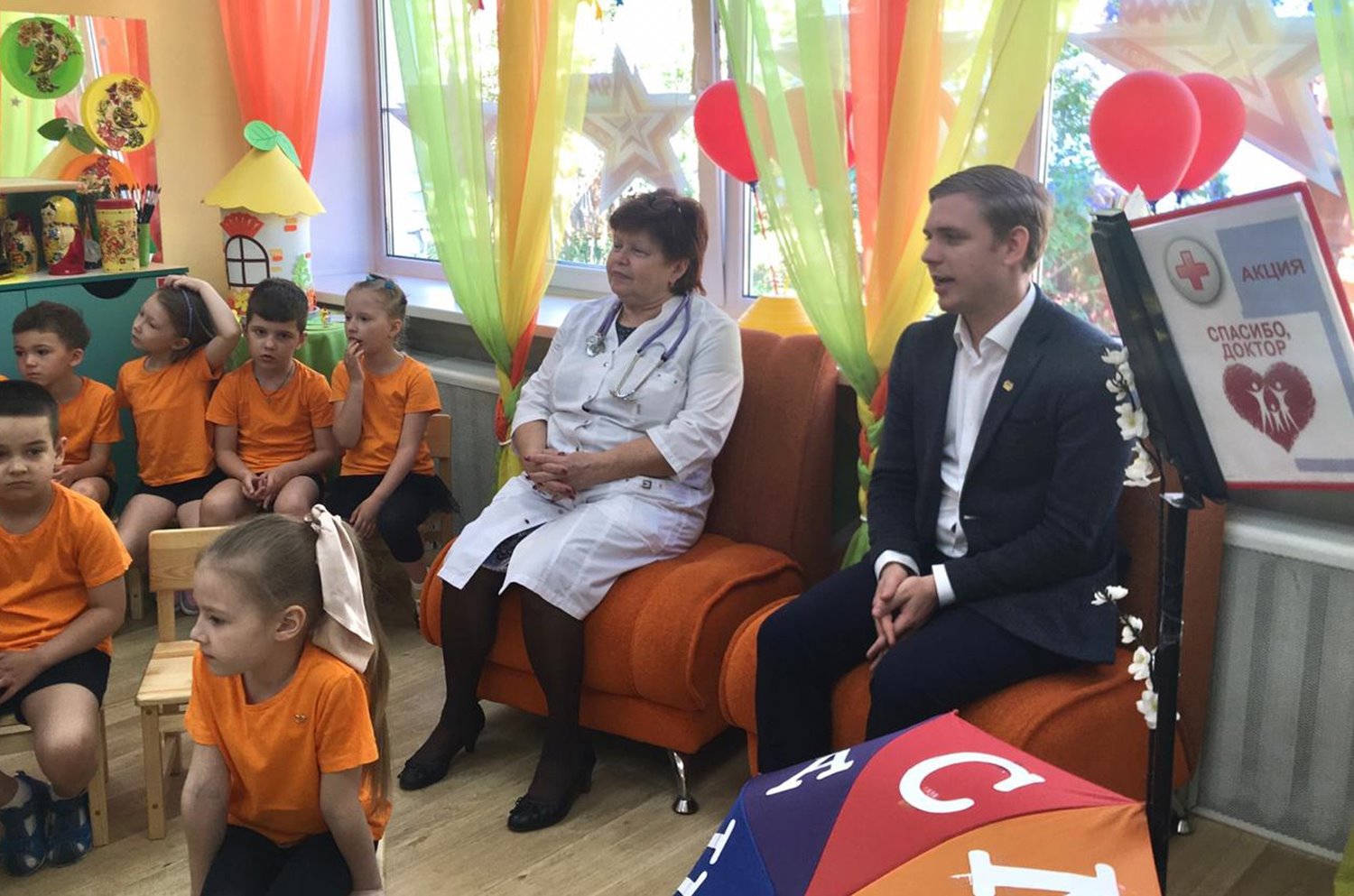 20 мая депутат Курганской городской Думы Максим Пивоваров побывал в МБДОУ города Кургана «Детский сад № 115» и принял участие в посвященном Дню медицинского работника празднике «Спасибо, доктор!».