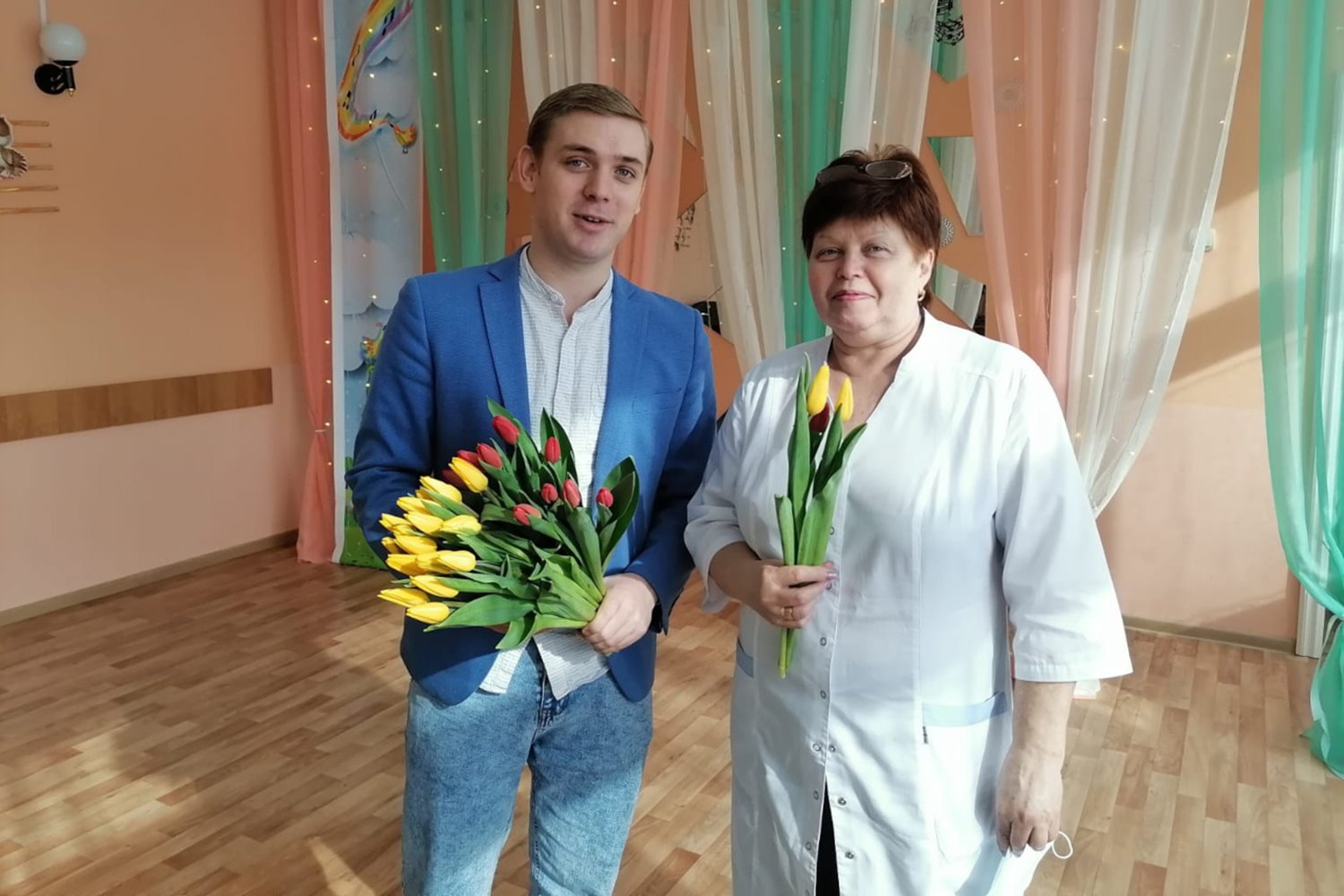 Символом праздника 8 марта является тюльпан, его принято дарить всем женщинам, и сегодня именно эти цветы радовали милых дам. Максим Владимирович посетил и поздравил женщин студии вокала "ДЕКО", дворца детского и юношеского творчества города Кургана, МБДОУ города Кургана «Центр развития ребенка – детский сад № 115».