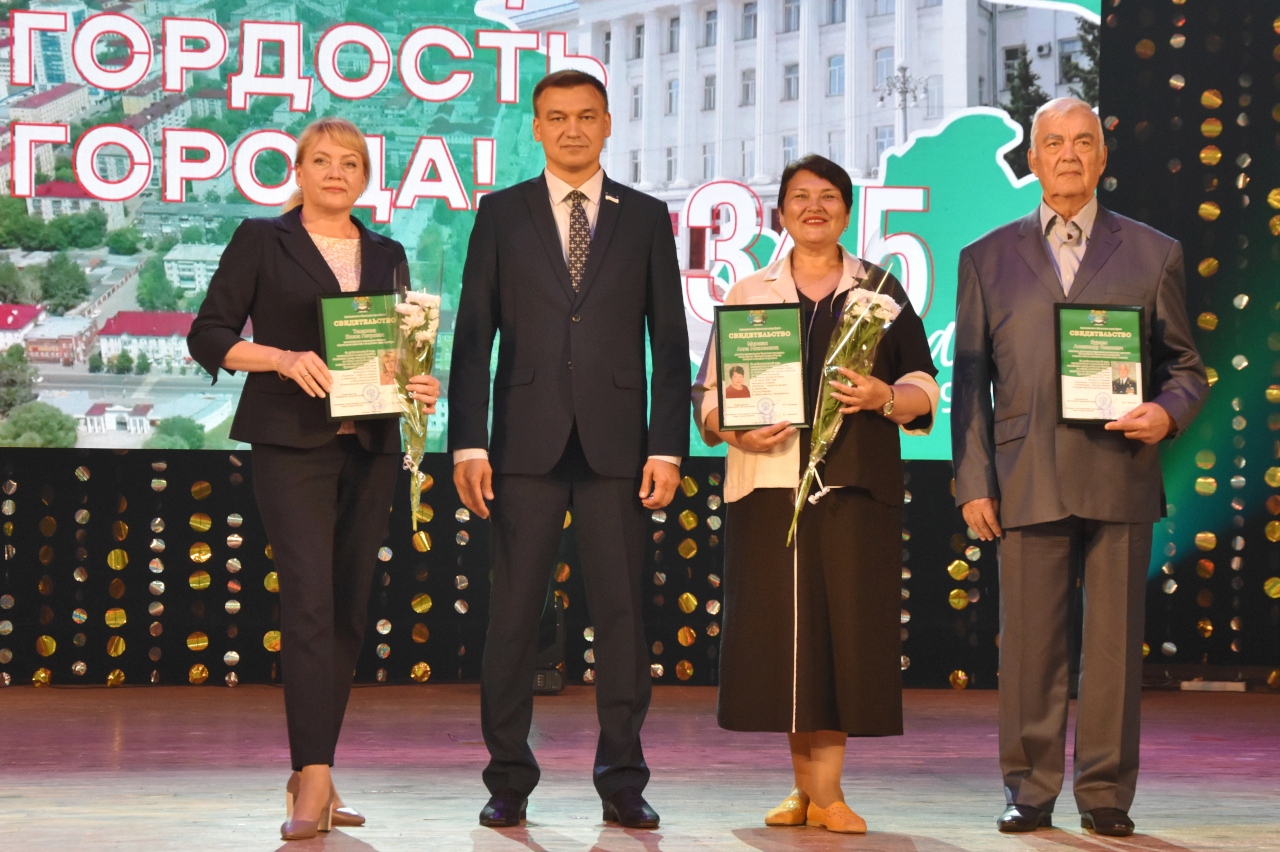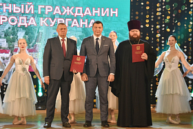 Открыл торжественное мероприятие Временно исполняющий полномочия Главы города Антон Науменко. Он объявил имена новых Почетных граждан города, которыми признаны исполнительный директор Курганстальмоста Сергей Парышев и настоятель местной религиозной организации Михаил Кучеров. Это самое значимое звание, которое присваивается персонально и пожизненно выдающимся личностям, чей вклад в развитие Кургана неоценим. Им вручены свидетельства, нагрудные знаки и удостоверения.
