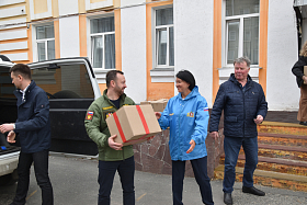 В город Курган с гуманитарной миссией прибыла делегация из Свердловской области в составе депутата Законодательного Собрания Свердловской области Алексея Коробейникова, Председателя Думы городского округа «город Ирбит» Павла Томшина, депутата Михаила Смердова и заместителя Главы городского округа «город Ирбит» Ирины Дерябиной.
