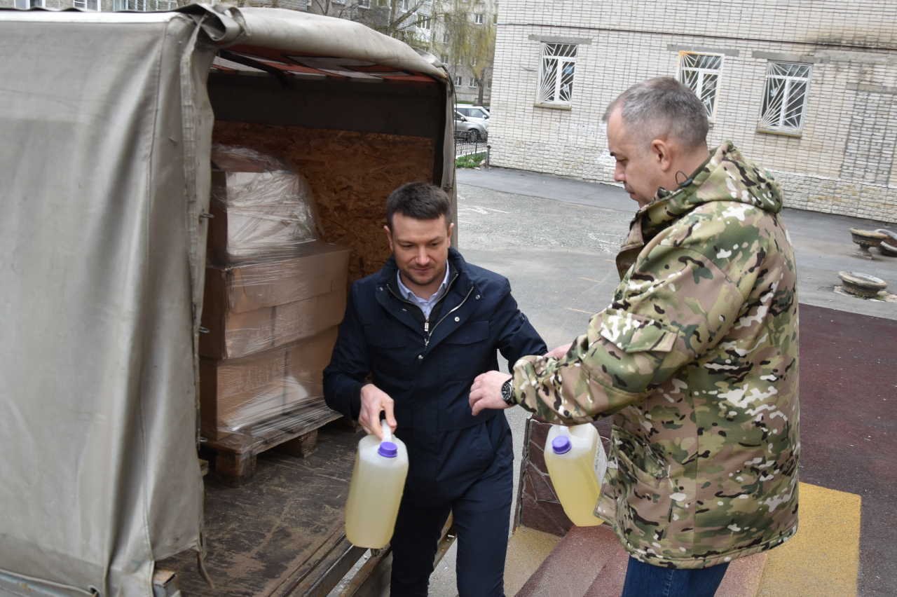 Затем они посетили расположенный в гимназии № 31 пункт временного размещения граждан и передали средства личной гигиены, бытовую химию.