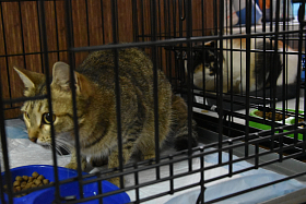 И сегодня все вместе они побывали на одной из специально оборудованных площадок для передержки домашних животных из зоны подтопления, которая находится в Курганском центре ветеринарии по улице Омской. Посмотрели, в каких условиях находятся на передержке кошки и собаки, пока их дома затоплены, и привезли им корм.