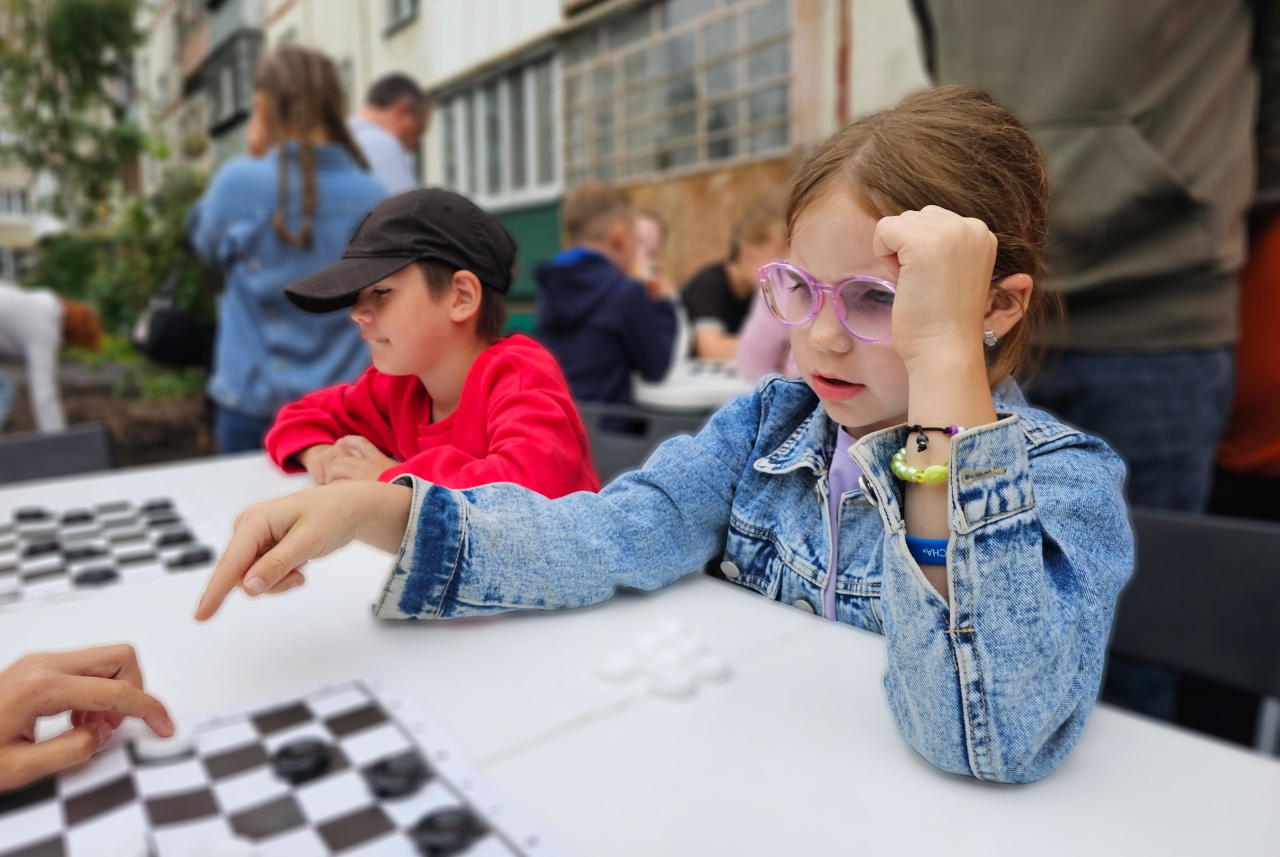 Ребята разных возрастов собрались вместе, чтобы сразиться на доске и определить, кто из них лучший стратег. Для некоторых участников это был первый опыт игры в шашки. Ребята вместе учили правила и помогали друг другу. К игре присоединились и более старшие жители дома, поддерживая и вдохновляя всех своим присутствием. Независимо от уровня подготовки участников турнира, все отлично провели время на свежем воздухе, наслаждаясь интеллектуальной битвой и дружеской обстановкой. Вечер завершился веселой встречей с Чебурашкой и увлекательными играми с мыльными пузырями.