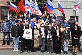 В рамках автопробега участники возложили цветы к памятникам, собравшимся рассказали о проведении Диктанта Победы, который по всей стране уже в седьмой раз состоится завтра, 25 апреля.